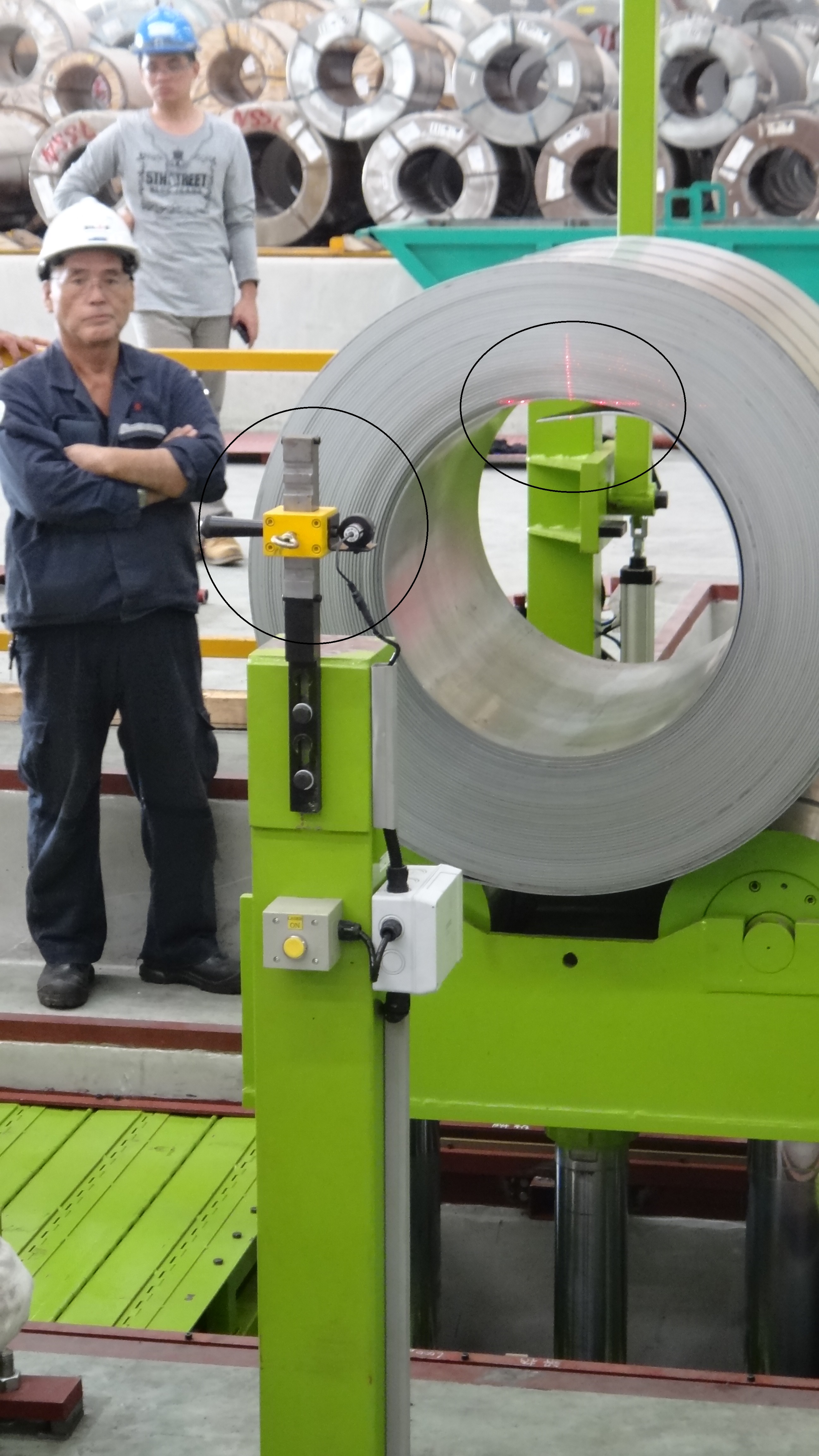 1. Los rayos láser marcan la altura precisa de la bobina y la posición del borde para que el carro de la bobina se ajuste. El operador puede seguir la guía del rayo fácil y rápidamente para cargar la bobina con precisión en el desenrollador.