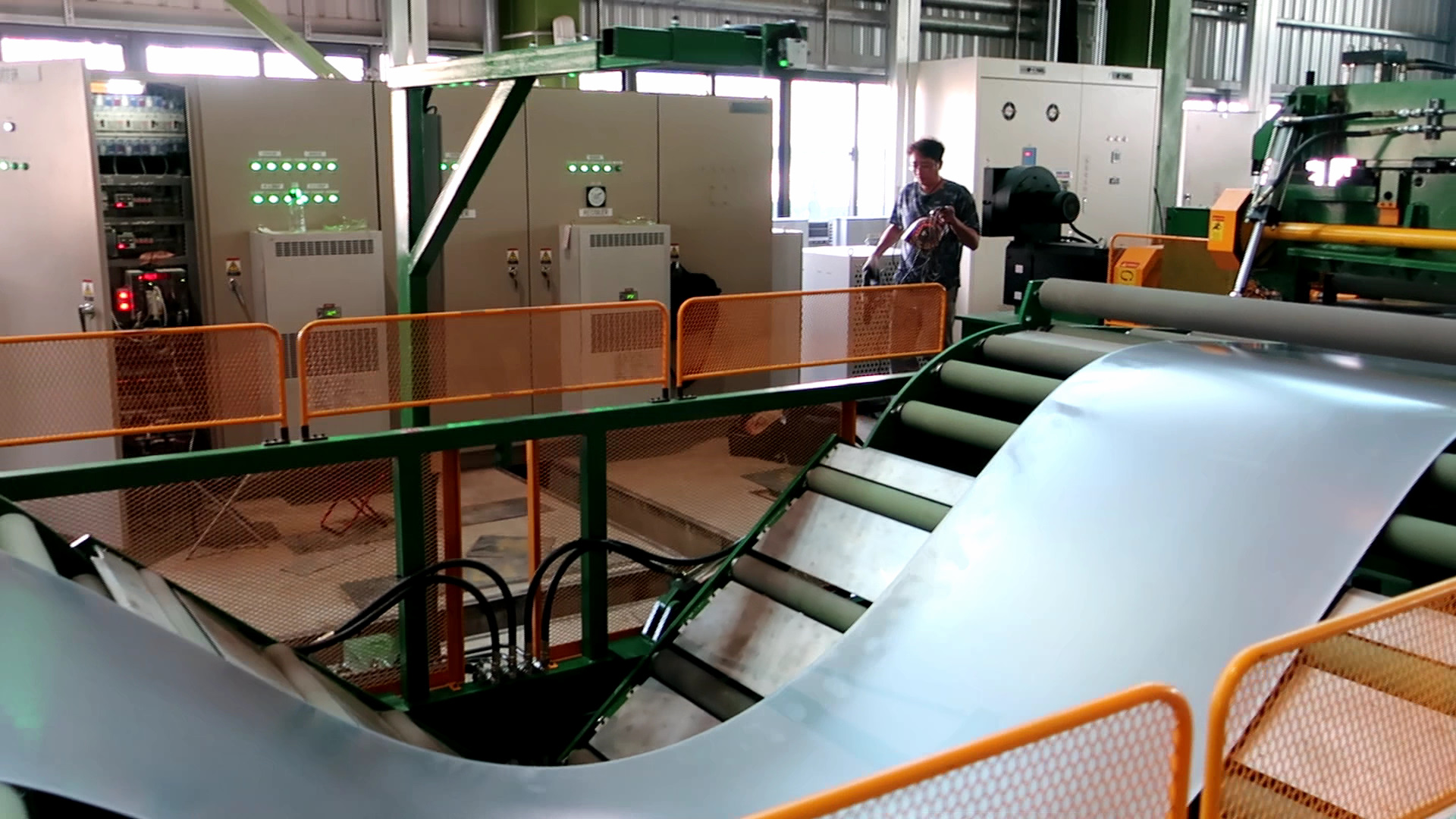 2. A través del monitor, el operador puede tener una visión general del estado del material desde el extremo del desenrollador hasta el extremo del enrollador.