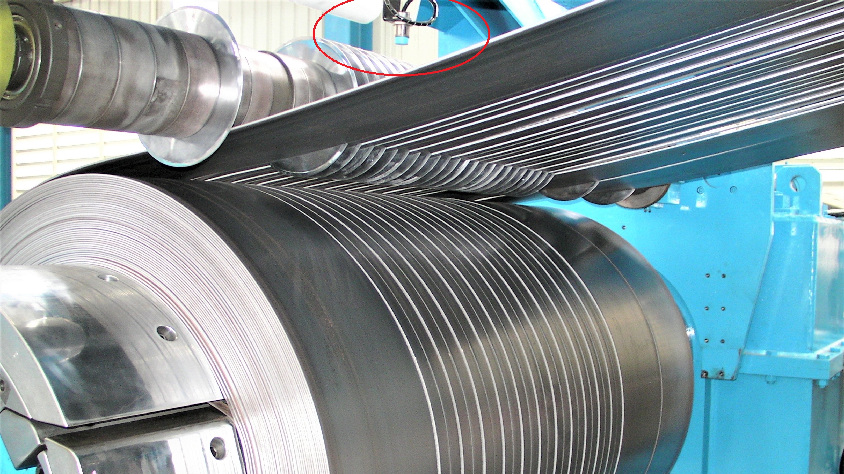 1. Con el control del sensor, el eje del separador se eleva automáticamente siguiendo el aumento del diámetro exterior de las tiras de retroceso.